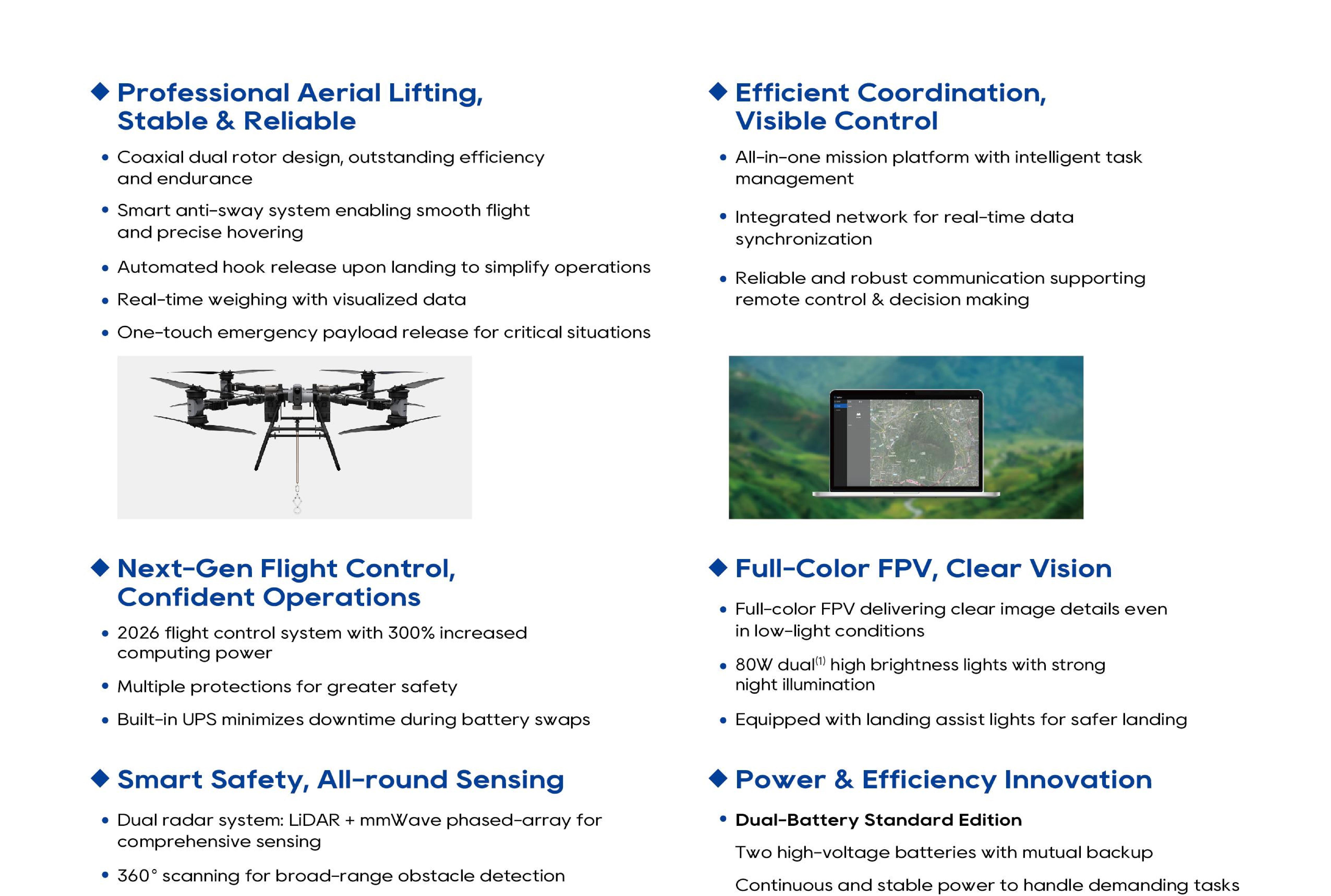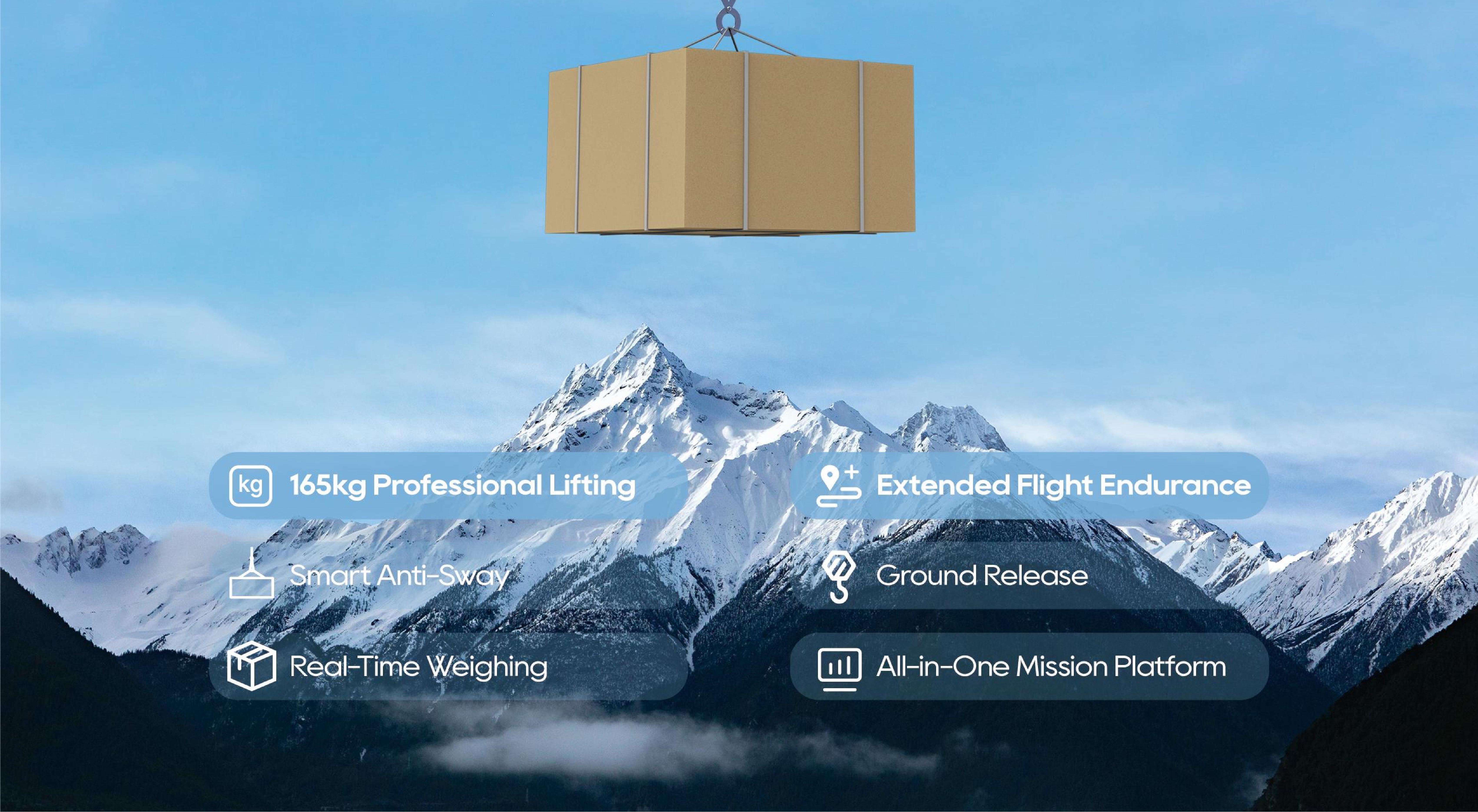 The Y160 cargo drone provides professional air transportation solutions through efficient collaboration, intelligent control, and multiple safety guarantees.