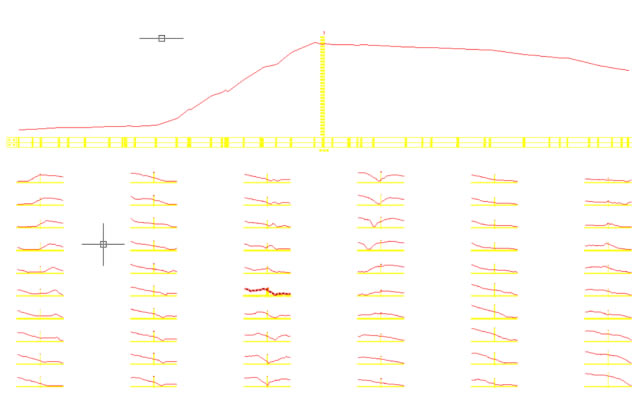 将去除植被后的点云导入专业的断面图绘制软件,叠加纵横断面线,即可生成纵横断面图(部分)。